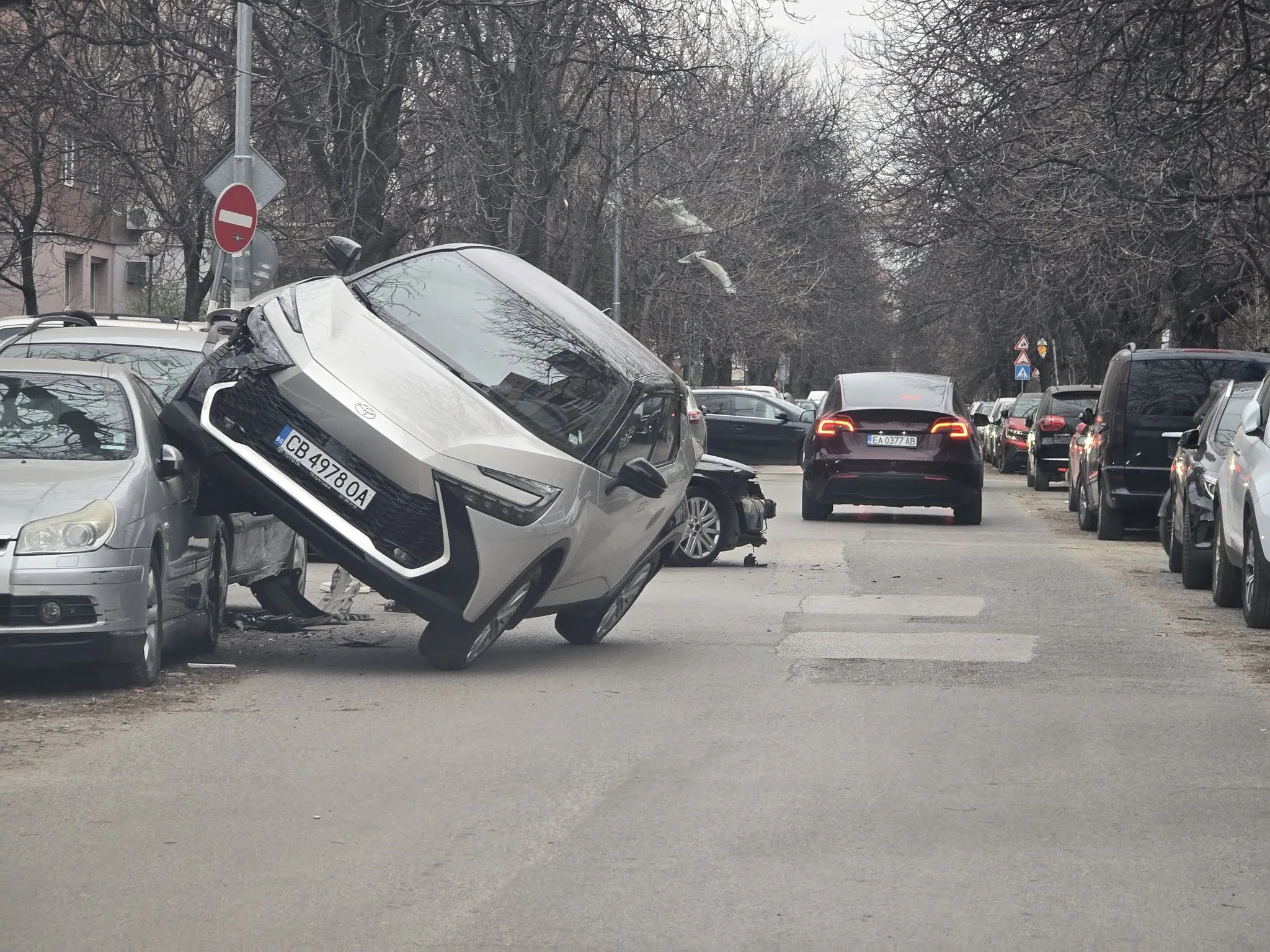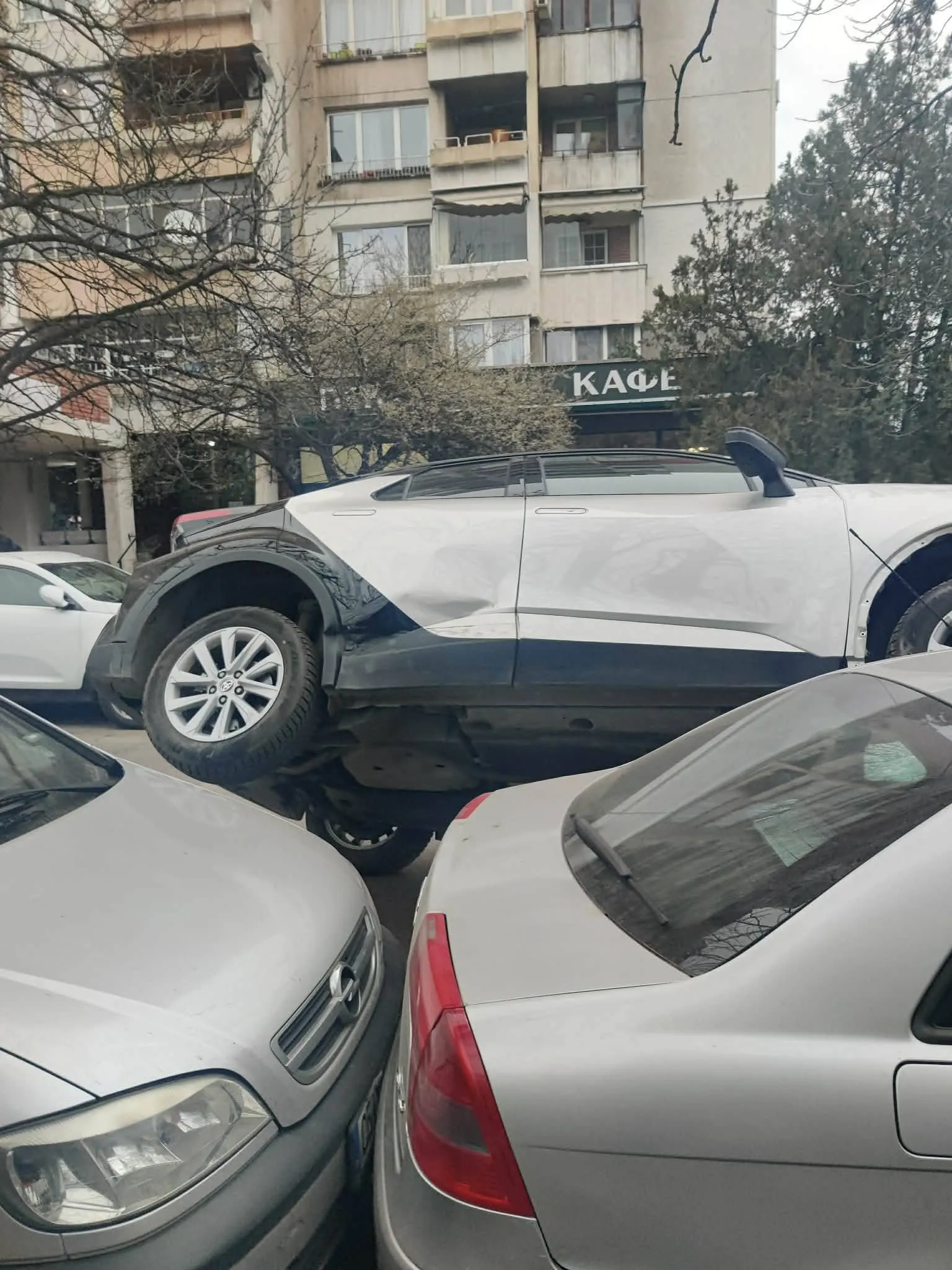 Пътнотранспортно произшествие в столицата. Щети има по четири коли, като една от тях се е "качила" върху друга. Това показва снимки, разпространени в социалните мрежи.