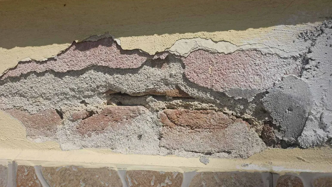 Сградата е построена през 1955 година, а днес по нея ясно личат конструктивни нарушения – пукнатини и изпадала мазилка. Според експерти това не е просто козметичен дефект, а сериозен проблем, свързан с влагата, повлиян от високите подпочвени води в региона. Част от щетите са прикрити с декоративни пана по препоръка на Регионална здравна инспекция, но това не решава проблема.