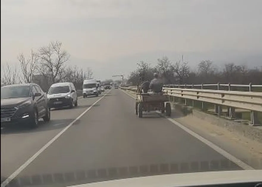 На този фон гражданин реши да подкара каруцата си по трасето, принуждавайки водачите, движещи се в негова посока, да съобразяват скоростта си с него и да го заобикалят.