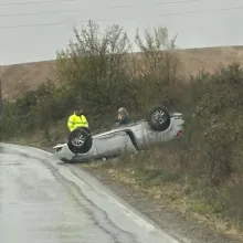 Кола се обърна по таван край Вакарел СНИМКИ