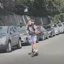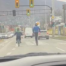 Опасно: Деца яхнаха тротинетка и колело по столичен булевард СНИМКА