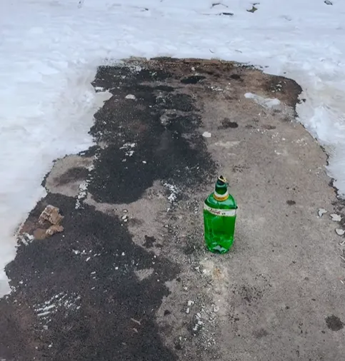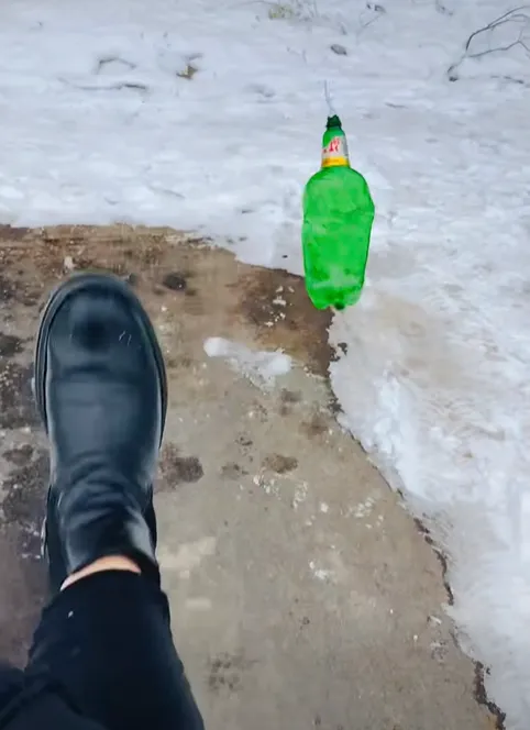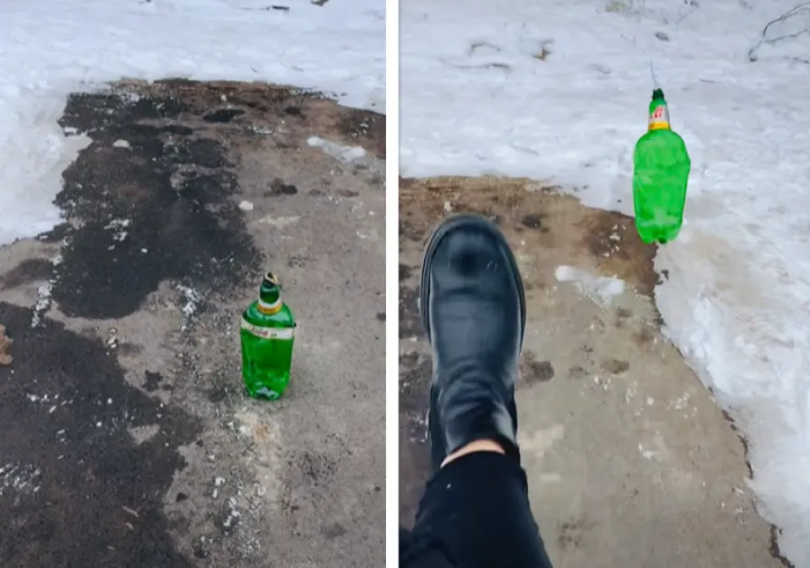 В записа мъжът демонстративно изритва шишето с крак, след което спокойно паркира автомобила си. Към видеото той добавя и коментар: