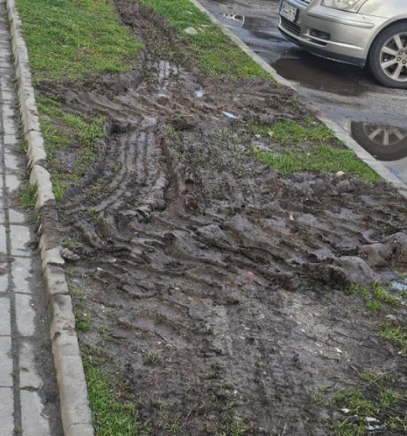 Сигнал за унищожени зелени площи край паркинг на ул. „Братя Шкорпил“ в пловдиския район "Южен", предизвика възмущение в социалните мрежи. По думите на гражданин, неизвестен шофьор е преминал с автомобил през тревната зона, оставяйки дълбоки кални следи по тротарната настилка.