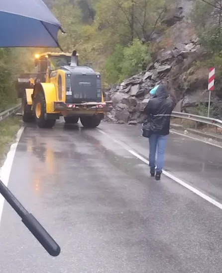 От АПИ допълват: Временно се ограничава движението и в двете посоки по път II-86 Асеновград - Нареченски Бани, в района на Асеновград поради свлачище. Всички МПС изчакват на място. Работи се по отстраняването на падналите камъни.