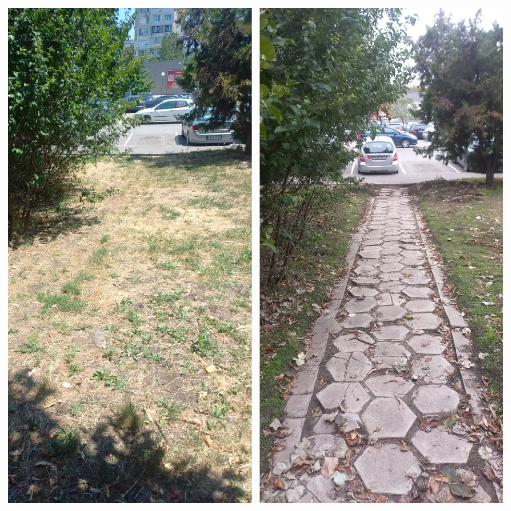 „Нови“ 150 метра алеи вече осигуряват по-удобен и подреден достъп за над 500 живущи в шестте входа на блока, съобщи един от организаторите на инициативата в социалните мрежи.