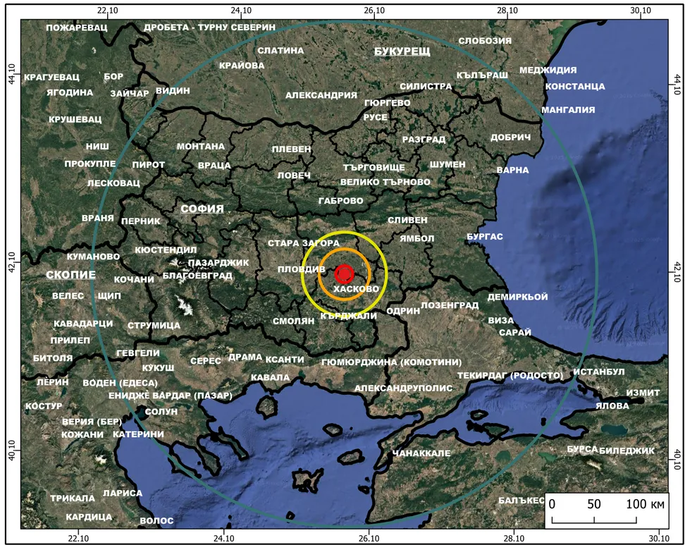 Вчера бяха регистрирани още два труса на територията на страната – следобед земетресение от 2,2 по Рихтер в Благоевградско, а в 23:46 ч. снощи – трус от 2,5 източно от Ямбол.“
