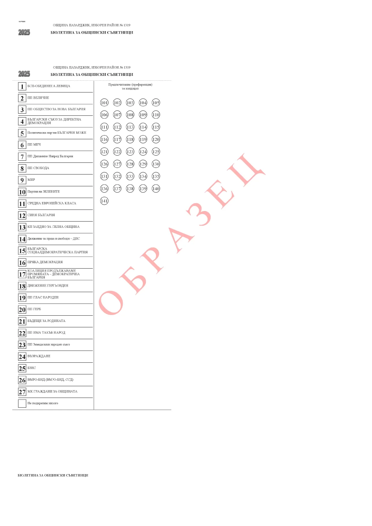 Вотът ще се проведе в 145 избирателни секции в община Пазарджик, като 91 са в града, а другите 54 - в кметствата. Вижте и образеца на бюлетината, на която гласа си могат да дадат пазарджиклии.