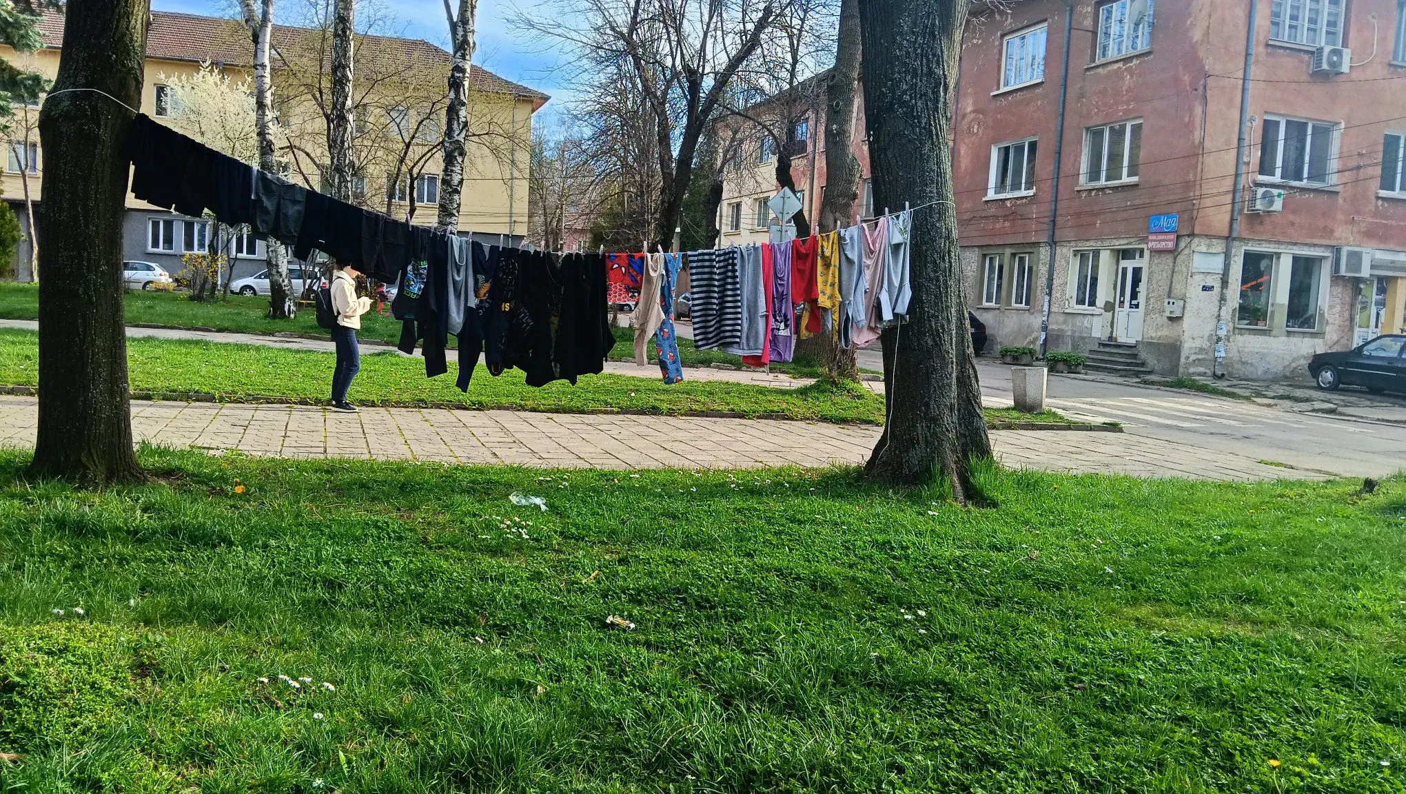 Засега не е ясно дали импровизираният простор е премахнат, но дискусията остава отворена: пречат ли дрехите на детските игри или просто „бодат очите“ на преминаващите?