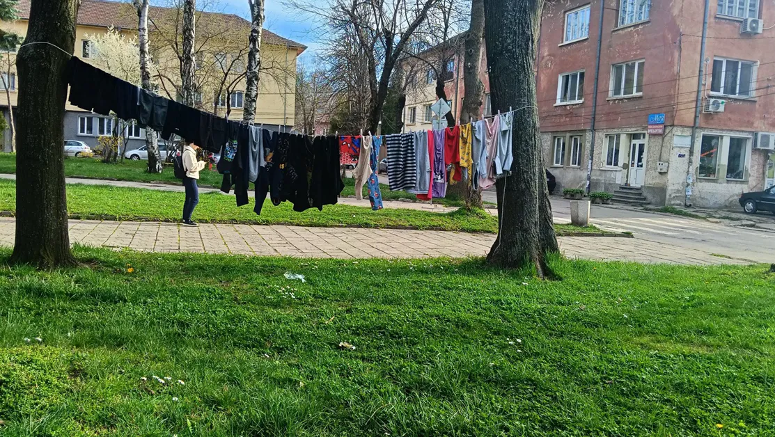 Засега не е ясно дали импровизираният простор е премахнат, но дискусията остава отворена: пречат ли дрехите на детските игри или просто „бодат очите“ на преминаващите?