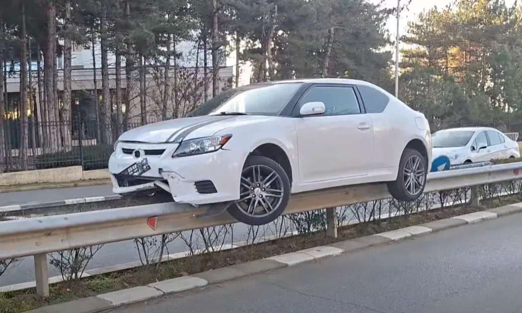 Странен пътен инцидент е станал днес на отсечката между Слънчев бряг и Свети Влас, където лек автомобил е „кацнал“ върху разделителните мантинели. Снимки от мястото показват колата, балансираща върху металната ограда, с видими щети по предната част.