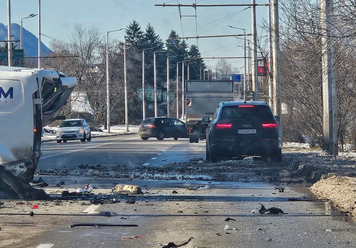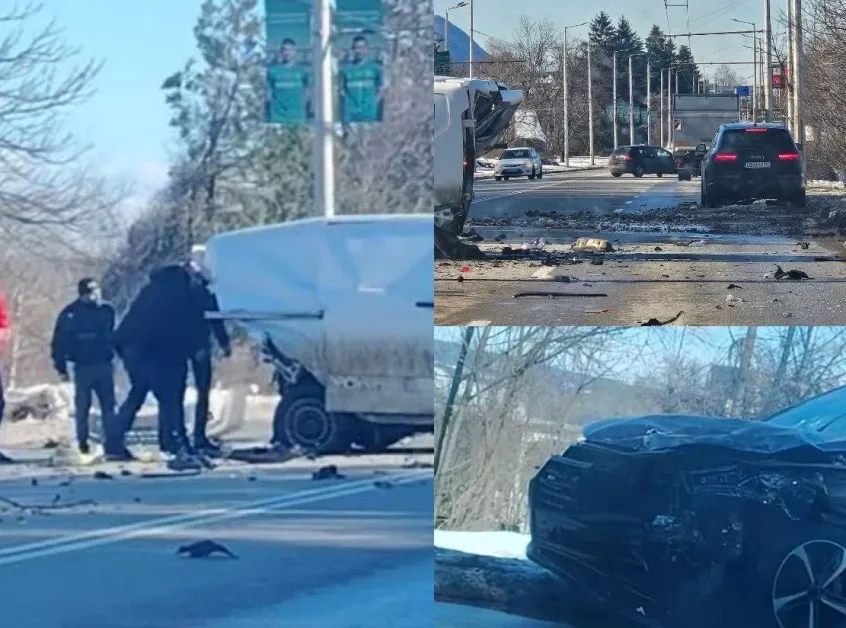 Джип, бус и кола са се ударили на булевард в града. Щетите са огромни, като са пристигнали поне две линейки, сочат кадри, разпространени от граждани.