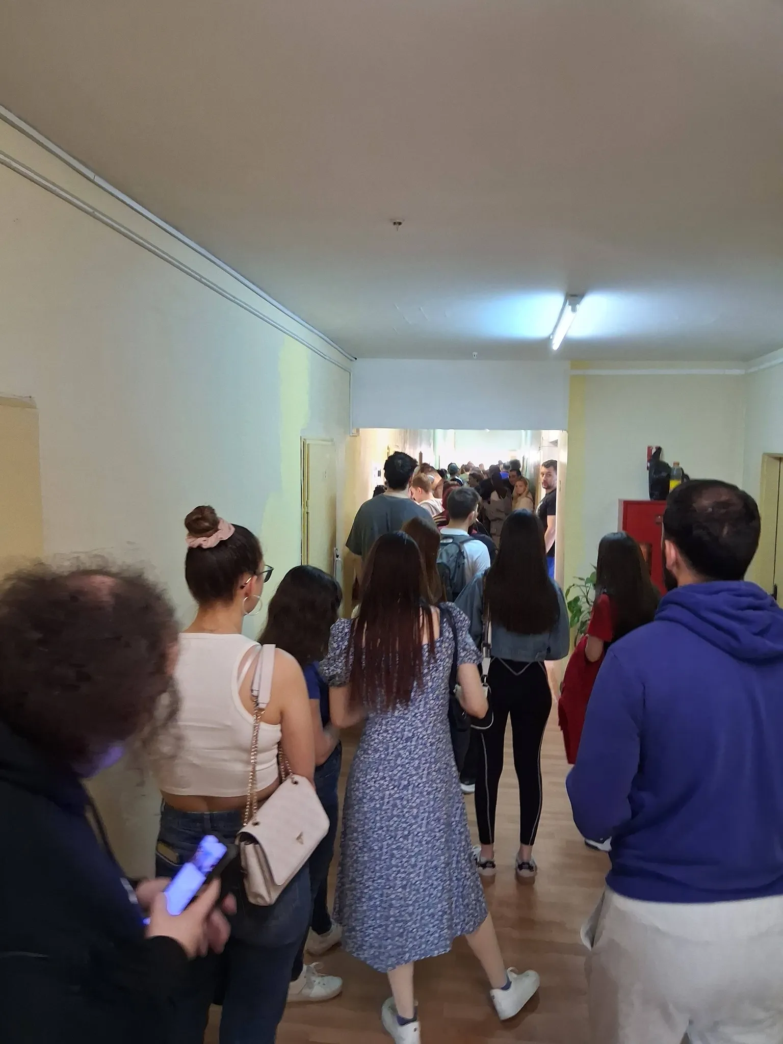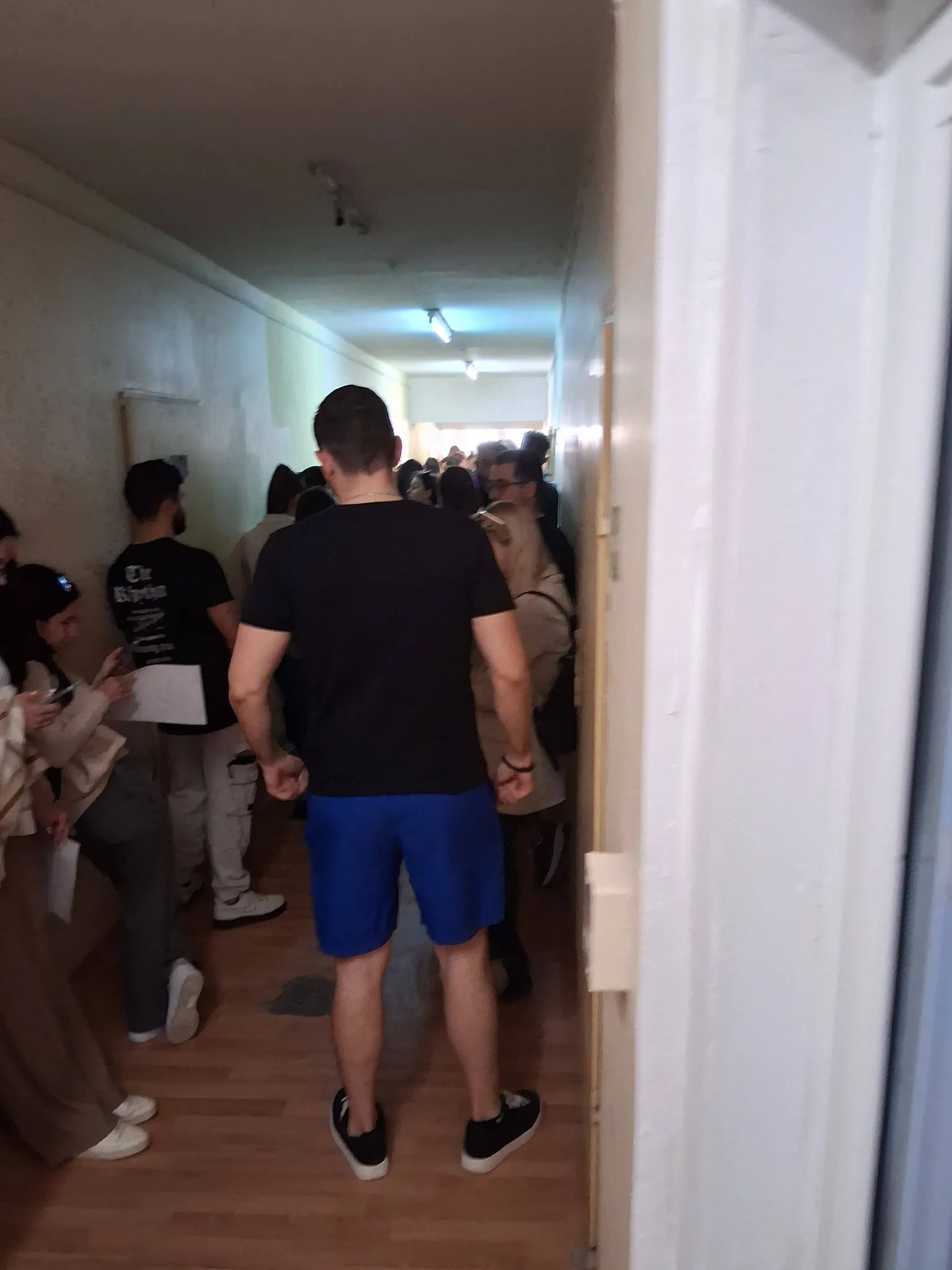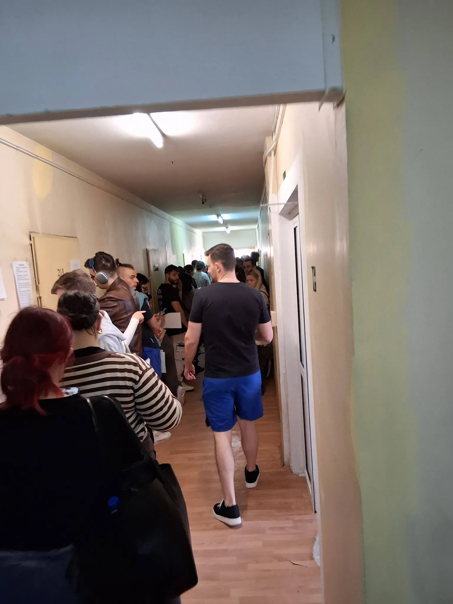 Младите излизат да гласуват на тези избори. Снимки от секция в блок 54Б в столичния квартал "Студентски град" показват препълнения от младежи коридор към секцията.