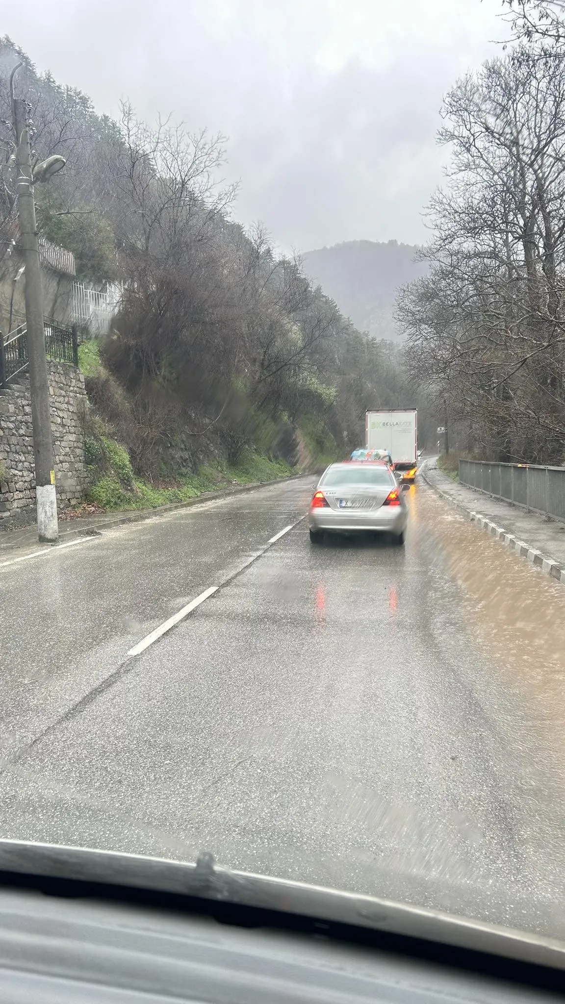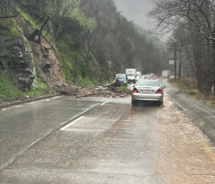 Свлачище затруднява движението по пътя Асеновград - Смолян. Земна маса се е свлякла в участъка до Бачково.