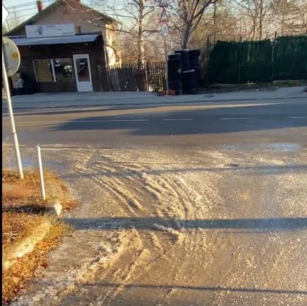Уличка в софийския квартал "Драгалевци" се превърна в истинско предизвикателство за пешеходци и водачи. Причината? Теч в района, комбиниран с ниските декемврийски температури, вода до очакваното - асфалтът се превръща в същинска "ледена пързалка".