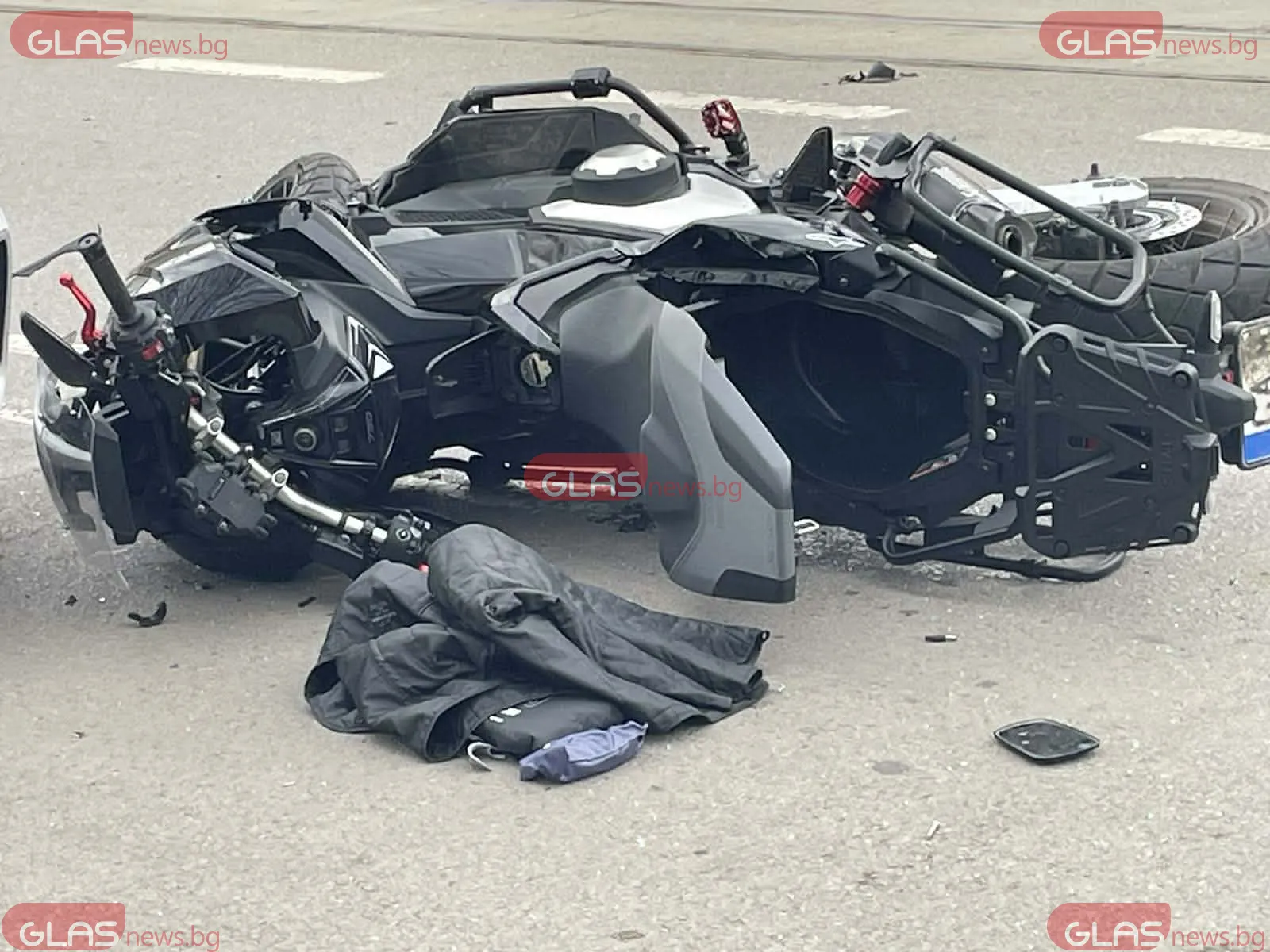 По първоначална информация, сблъсъкът е бил между двуколесно превозно средство и автомобил. Наши кадри показват, че ударът е настъпил в страничната част на автомобила - от страната на шофьора, което предполага силен и внезапен сблъсък.