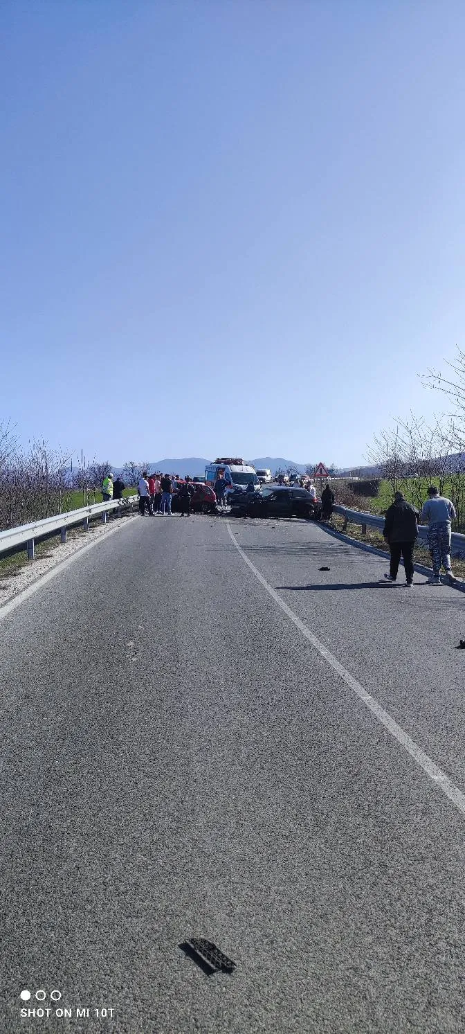 По първоначална информация два автомобила са се сблъскали челно на пътния участък. Данните са на очевидци, които съобщават за сериозни щети по предниците на двете коли.