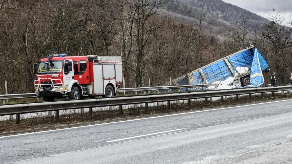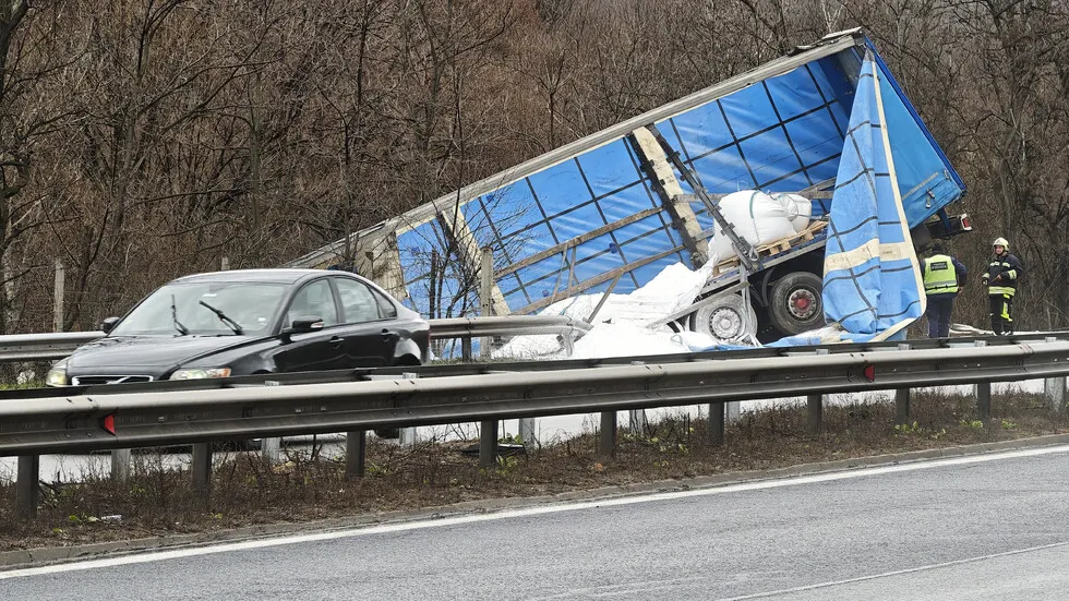 Тир се обърна на АМ Тракия. Инцидентът е станал на 56-ия километър, тежкотоварното превозно средство се е обърнало в канавка, съобщава БГНЕС.