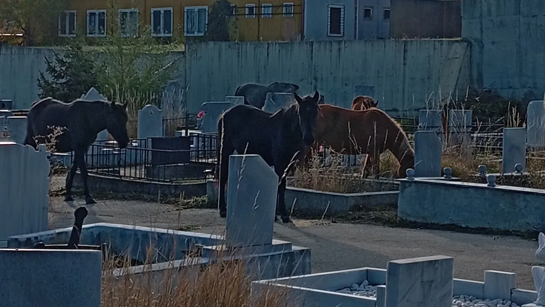 Необичайна гледка шокира жители на Самоков - коне се разхождат свободно из гробищния парк на града.