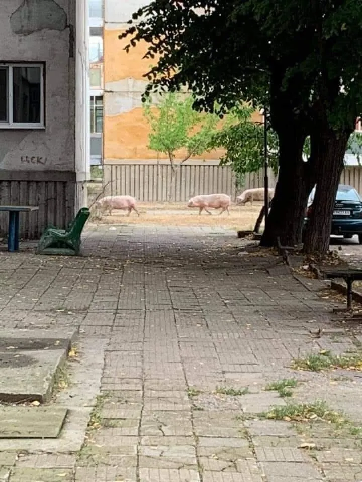 Нетипична гледка изненада жителите на Сливен – три прасета бяха забелязани да се разхождат спокойно между жилищни блокове в града. Снимки от куриозната случка бързо се разпространиха в социалните мрежи и предизвикаха усмивки сред потребителите.