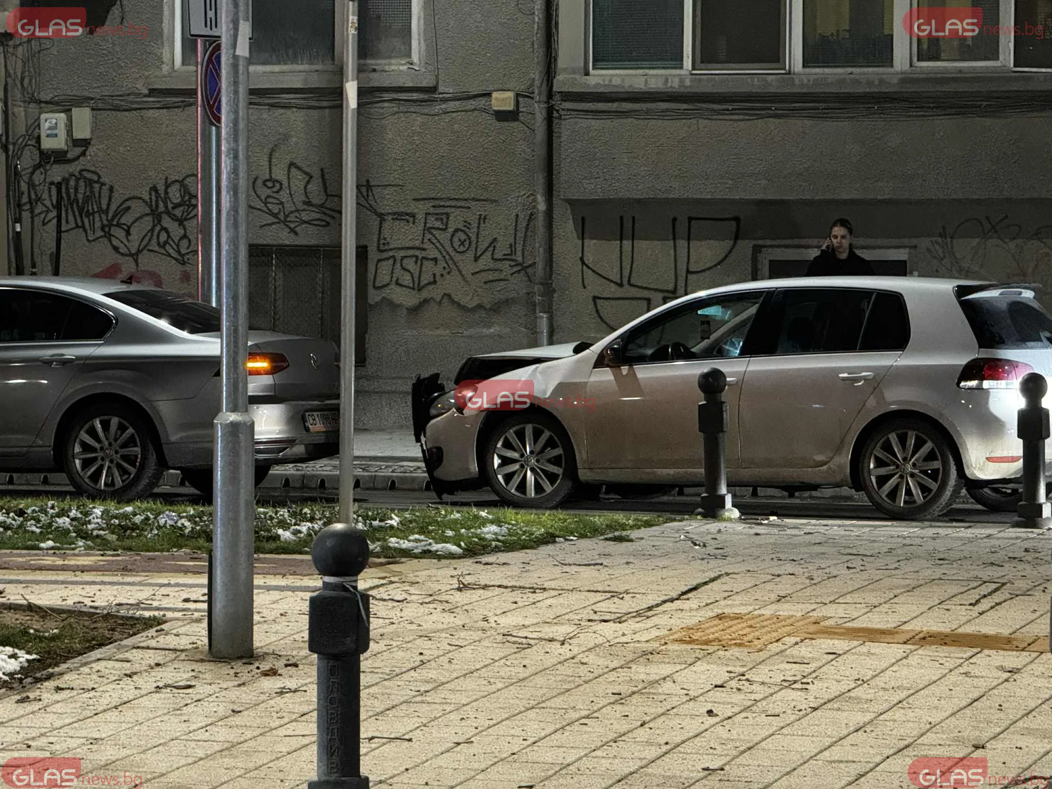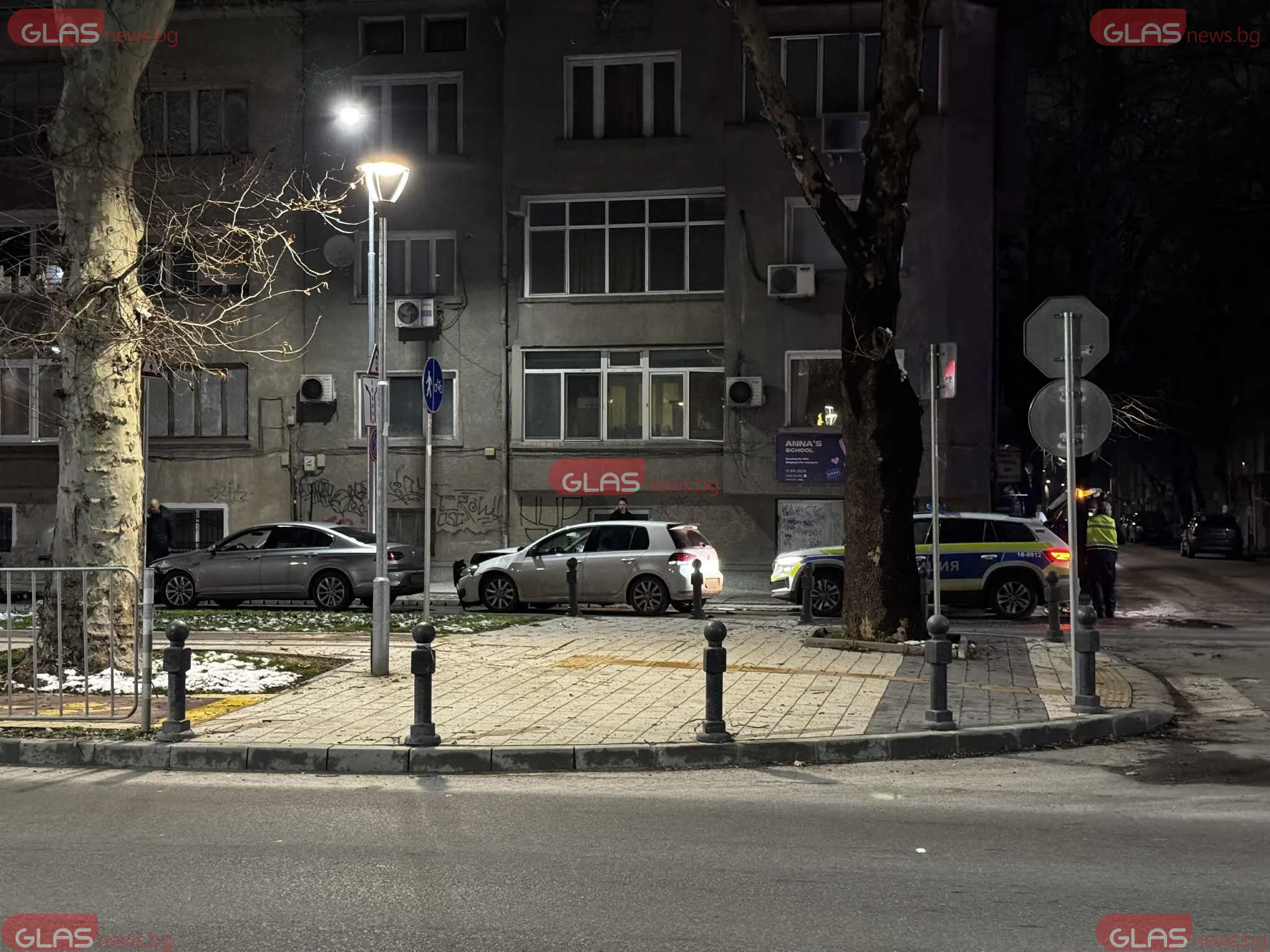 По първоначална информация два леки автомобила са се ударили, като едната кола е със сериозни материални щети, видимо по предната част. Инцидентът е станал в тъмната част на денонощието, като на място вече има полицейски екипи.