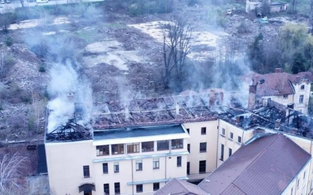 Пожарът в единственото по рода си училище у нас избухна на 4 април 2025 г. Унищожени бяха около 800 кв.м. от покрива. Една година по-късно, сградата все още е с временен покрив. А там, където го няма, кофи и легени събират водата.