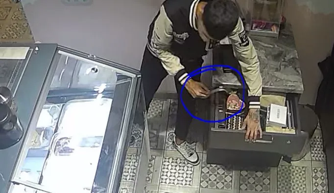 Те се възползват от факта, че на касата в този момент няма никого и се насочват към нея. Единият следи за появата на служители, а другият отваря шкафа, където се намира касата. Ръката му подминава монетника и отваря кутия, откъдето взима вещ, приличаща на банкнота.