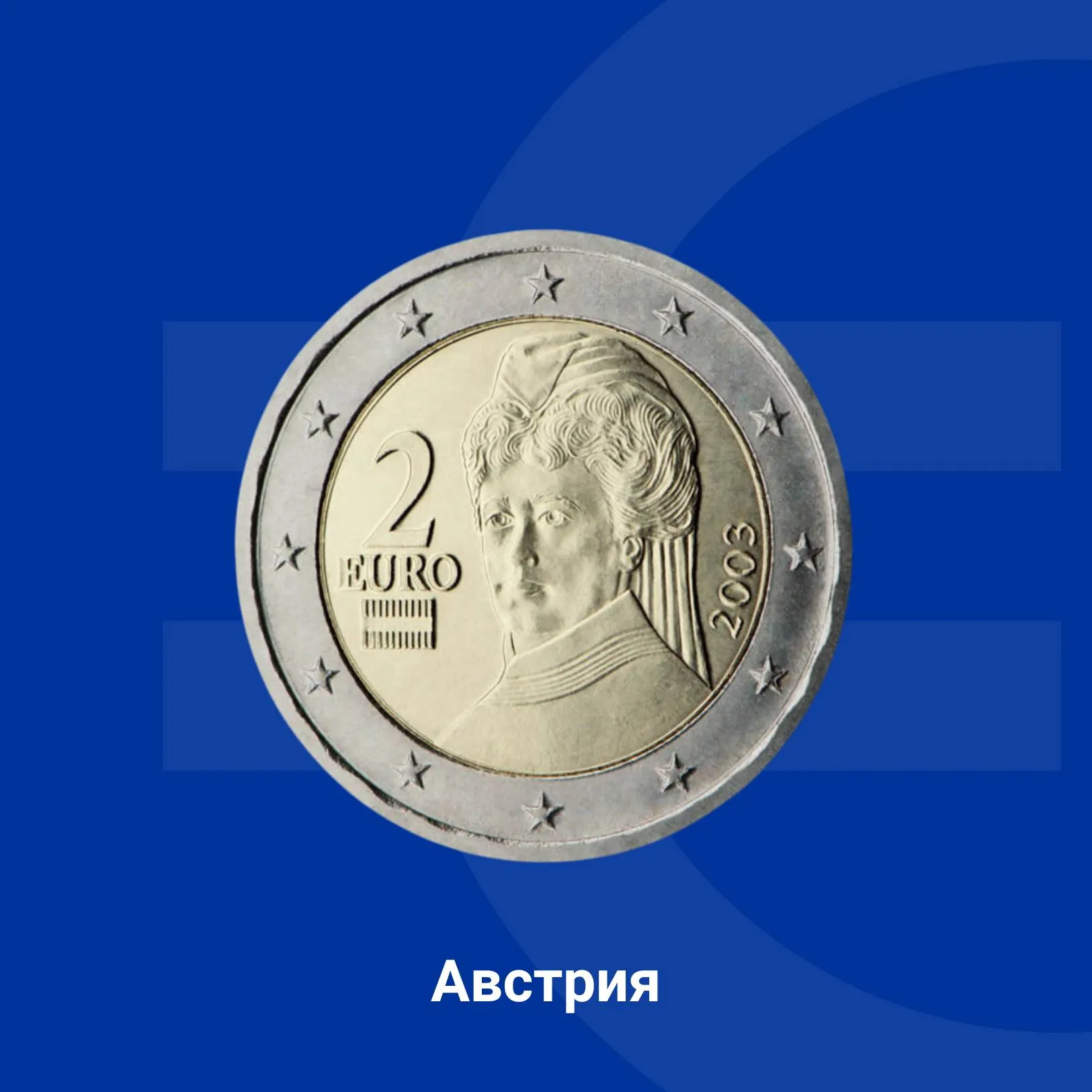 На австрийската монета от 2 евро е изобразен портрет на Берта фон Зутнер – писателка и активистка, символ на десетилетните миротворчески усилия на Австрия.
