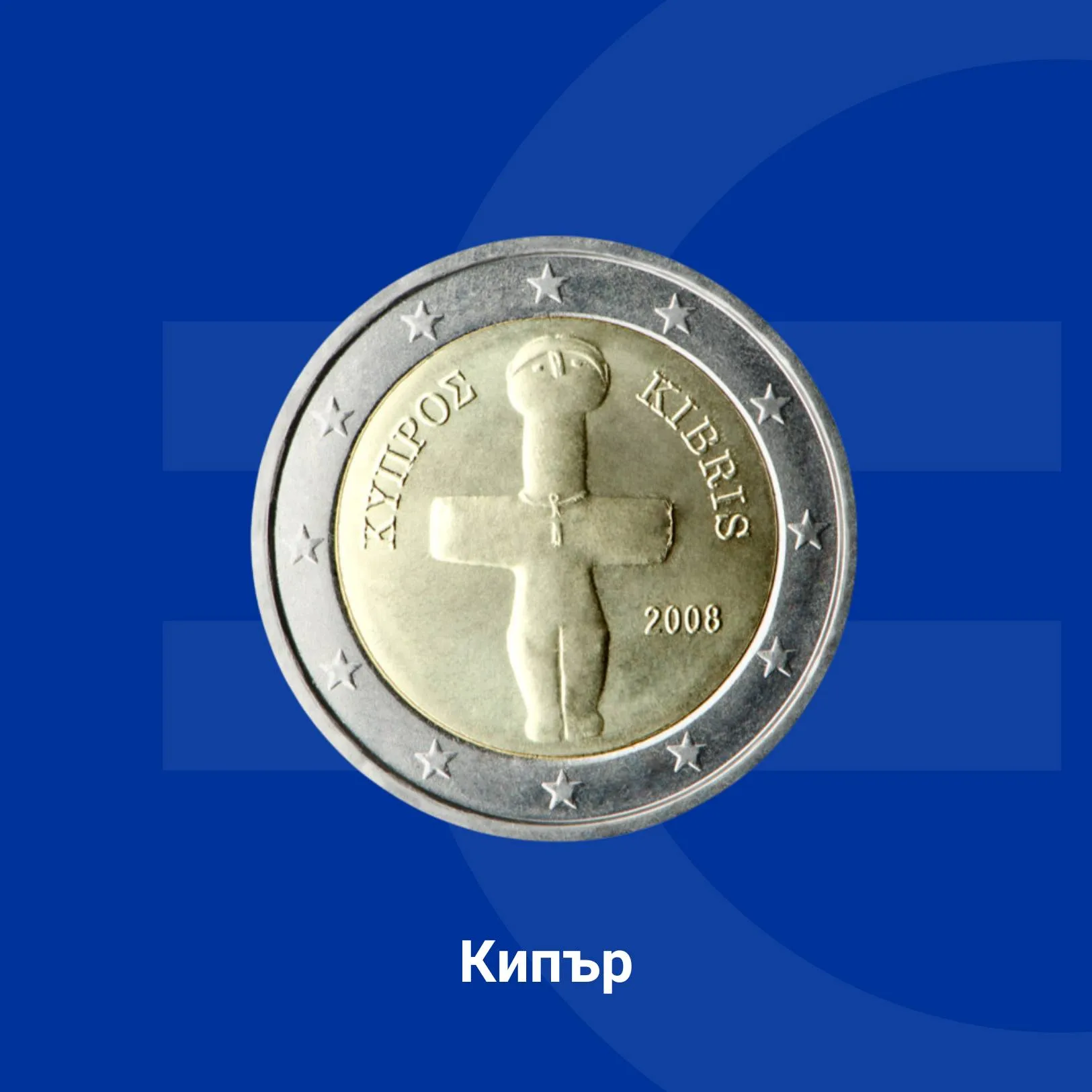 На кипърската монета от 2 евро е изобразен кръстовиден идол от епохата на халколита (каменно-медната епоха), датиращ от 3000 г. пр. н. е.