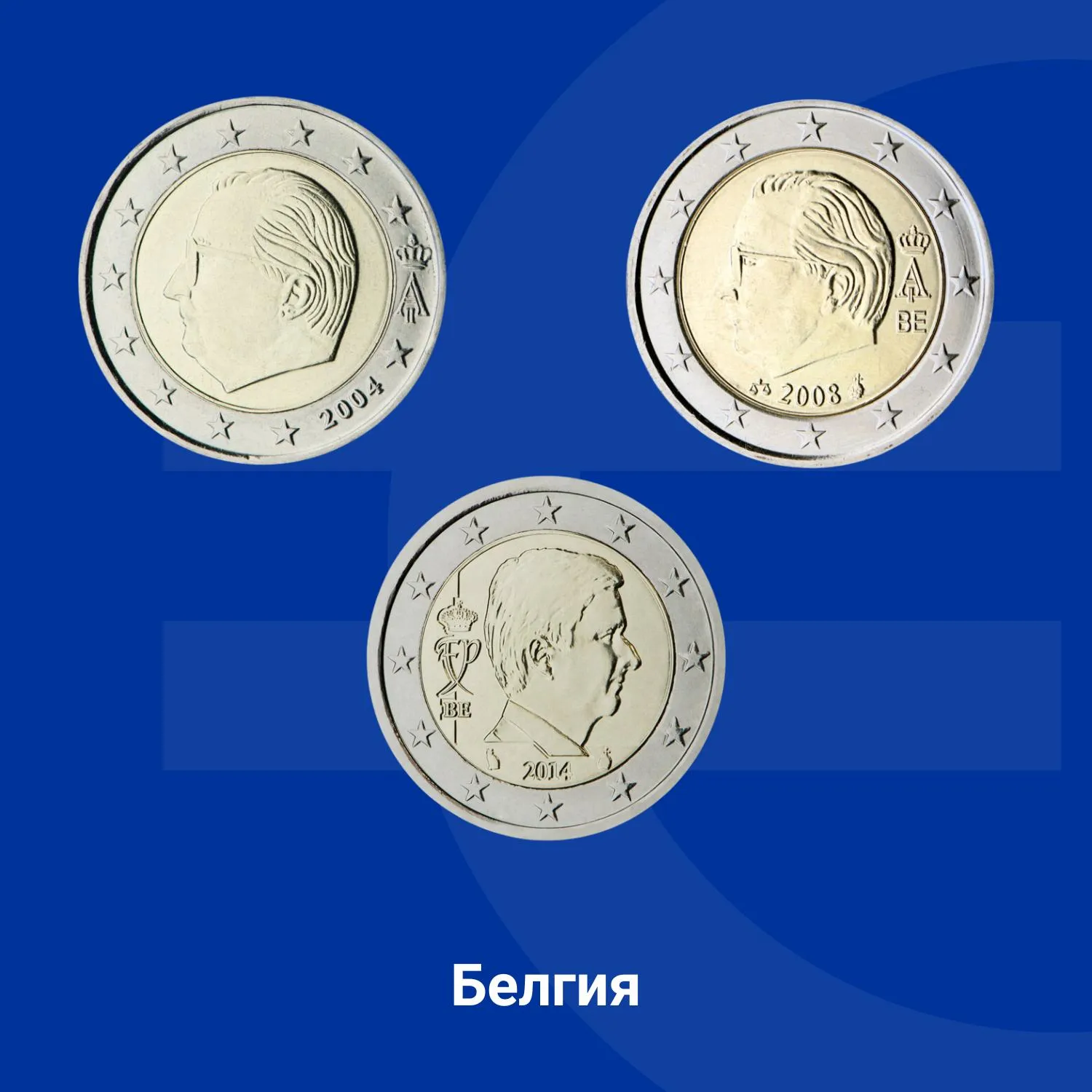 През 2014 г. Белгия въвежда третата серия евромонети, на които е изобразен крал Филип, неговият кралски монограм „FP“ и кодът на държавата „BE“. Знакът на монетния двор е разположен от двете страни на годината на емитиране.