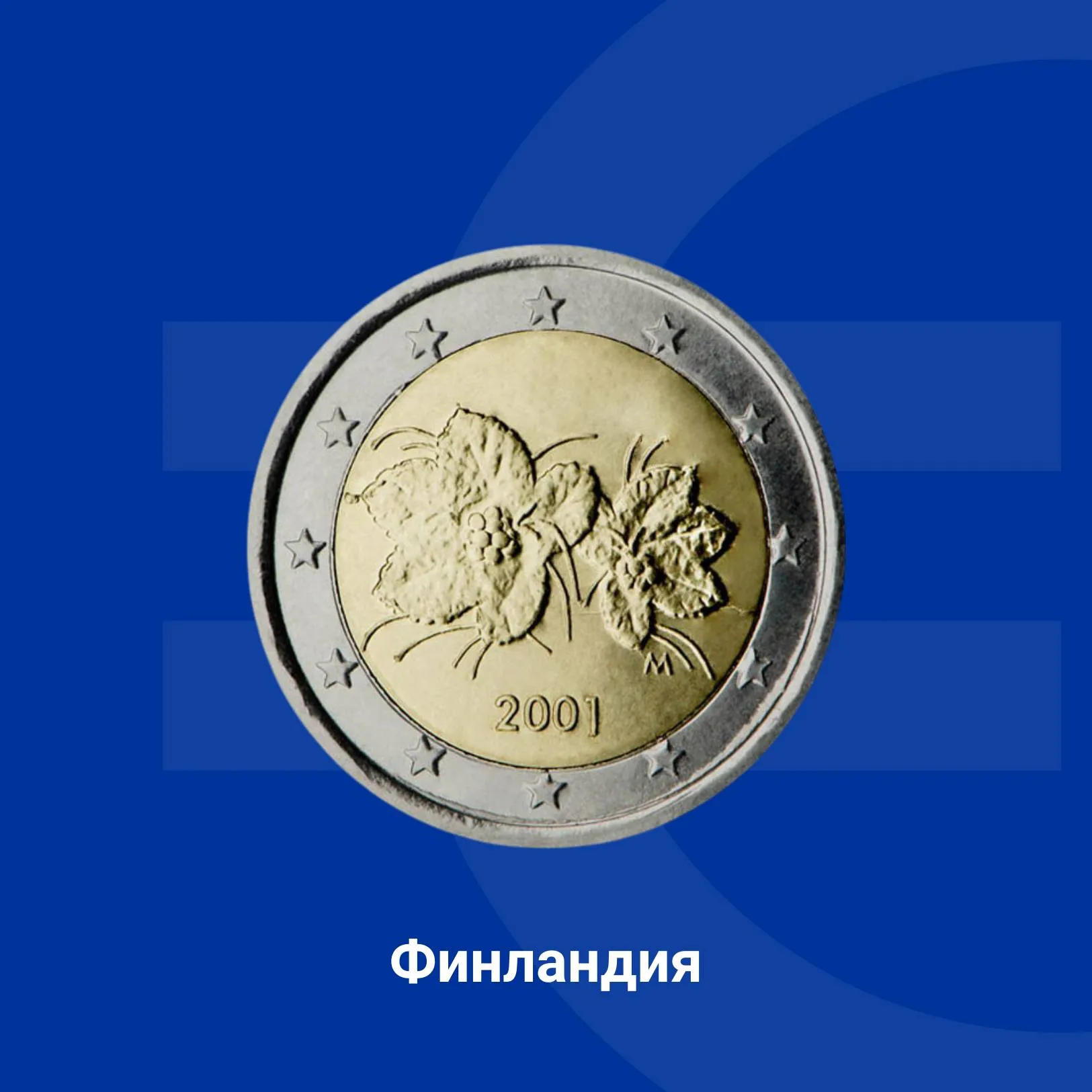 Дизайнът на монетата от 2 евро на Финландия включва изображения на плодове и цветове на дива малина.