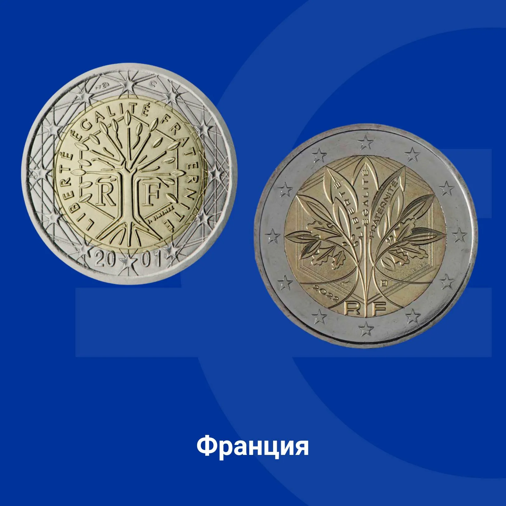 Дизайнът на монетата от втората серия, въведена през 2022 г., включва клонки от дъб и маслина, които образуват дървото на живота и символизират силата, стабилността и мира. Дървото и девизът на Франция са вписани в шестоъгълник.