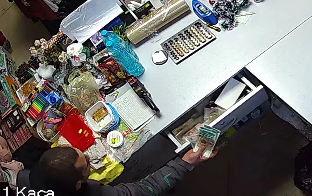 „На 26.12.2025 г. в нашия магазин в гр. Бургас, ул. „Ивайло“ №25, докато нямаше човек на касата, влезе лице и открадна 830 лв.
