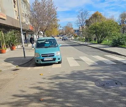 Водач на малък автомобил успя да възмути десетки сливналии със скандална проява на безотговорно паркиране. Светлосин Opel Agila беше заснет „цъфнал“ директно върху пешеходна пътека в Сливен, като по този начин блокира изцяло преминаването на пешеходци.