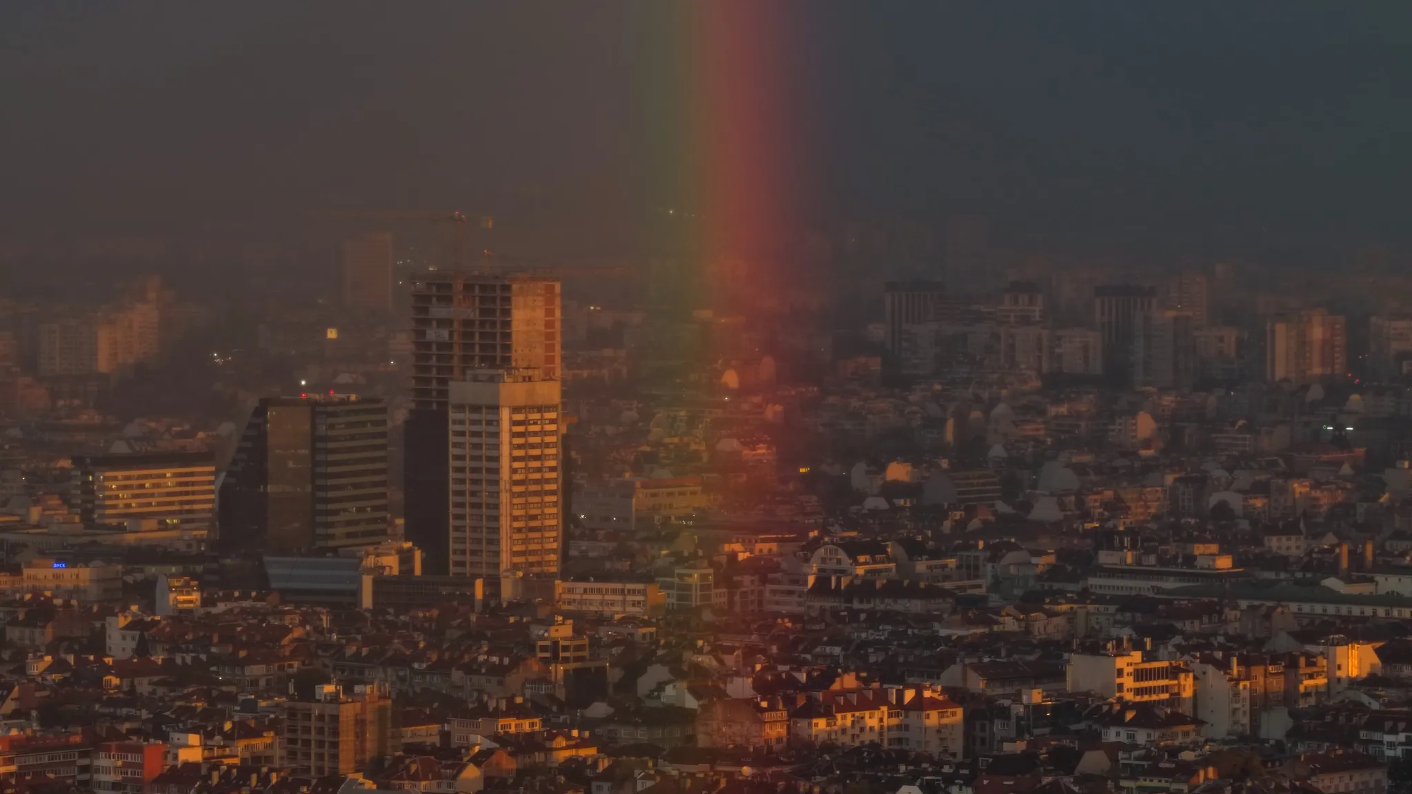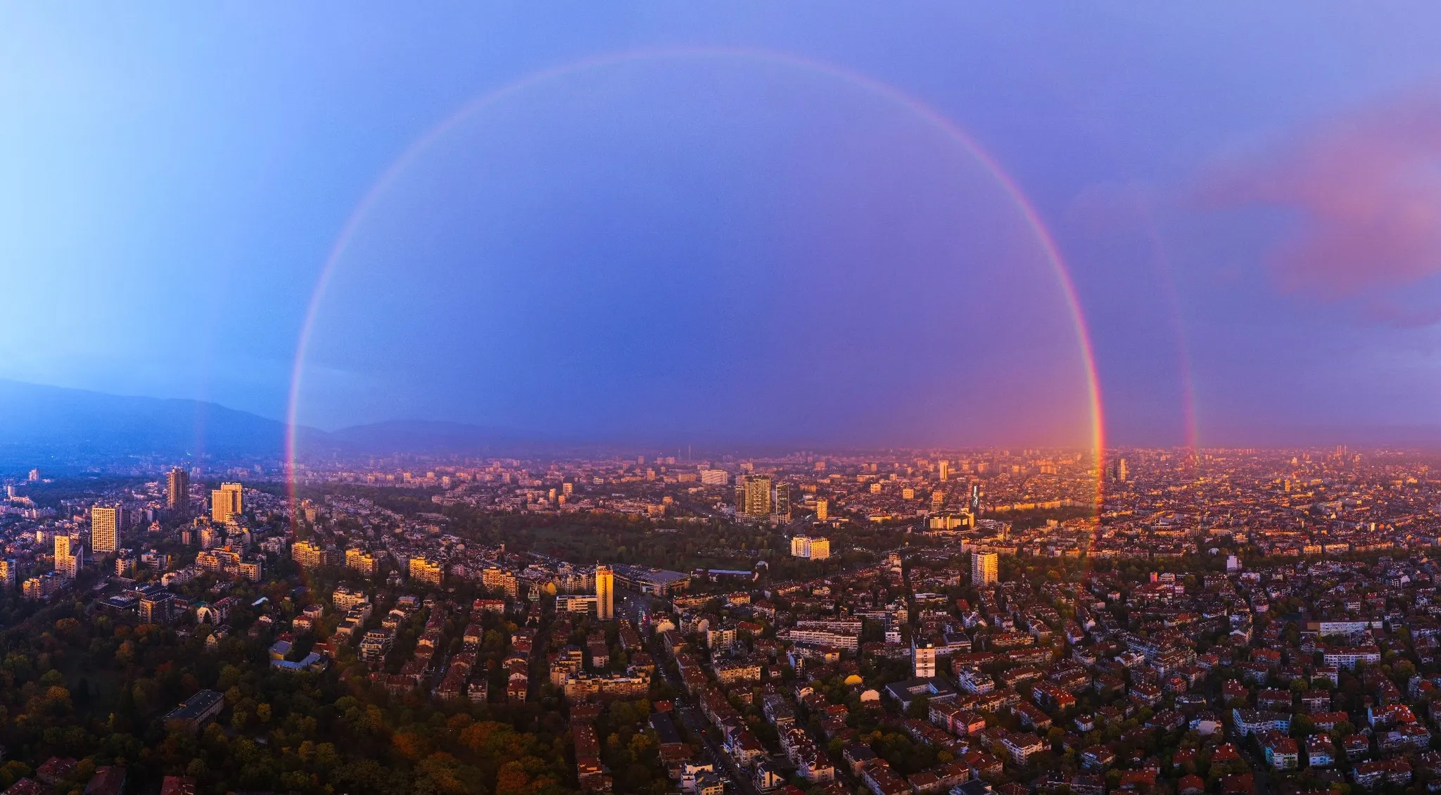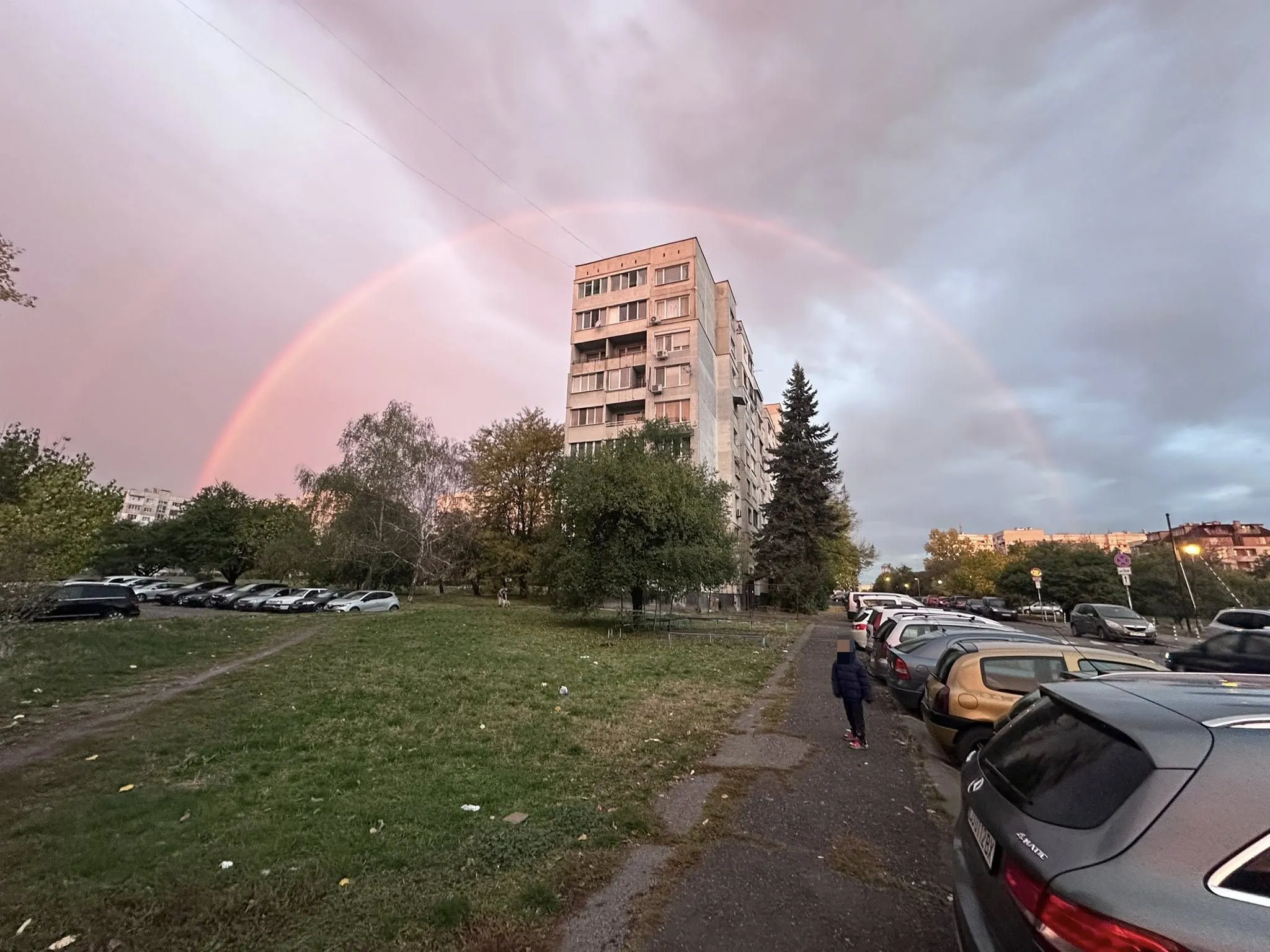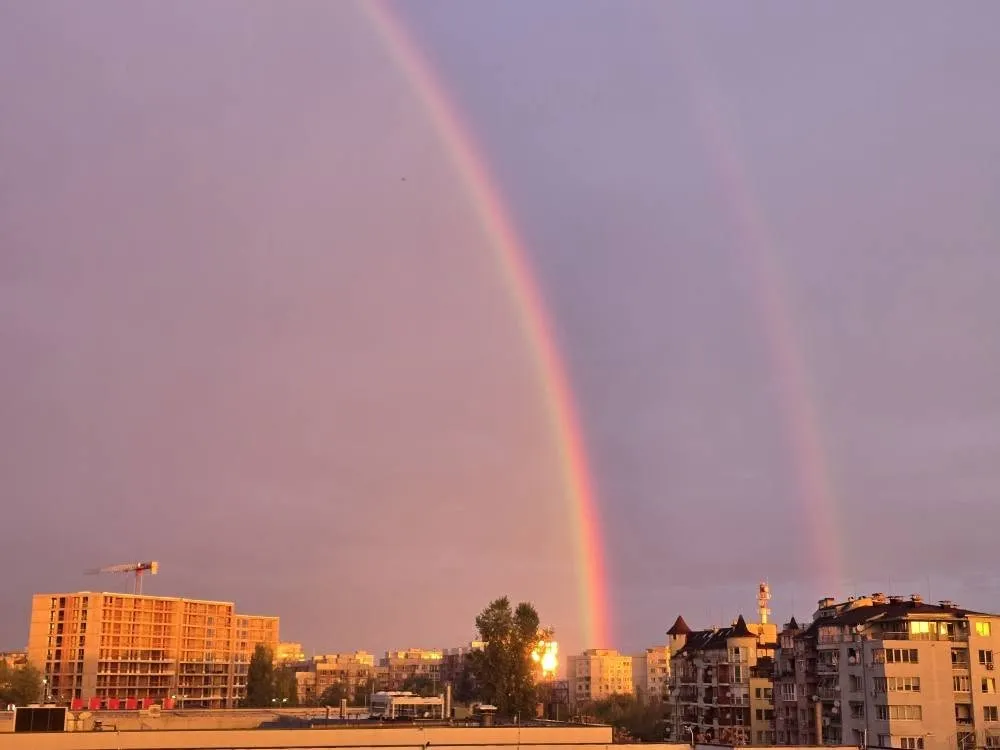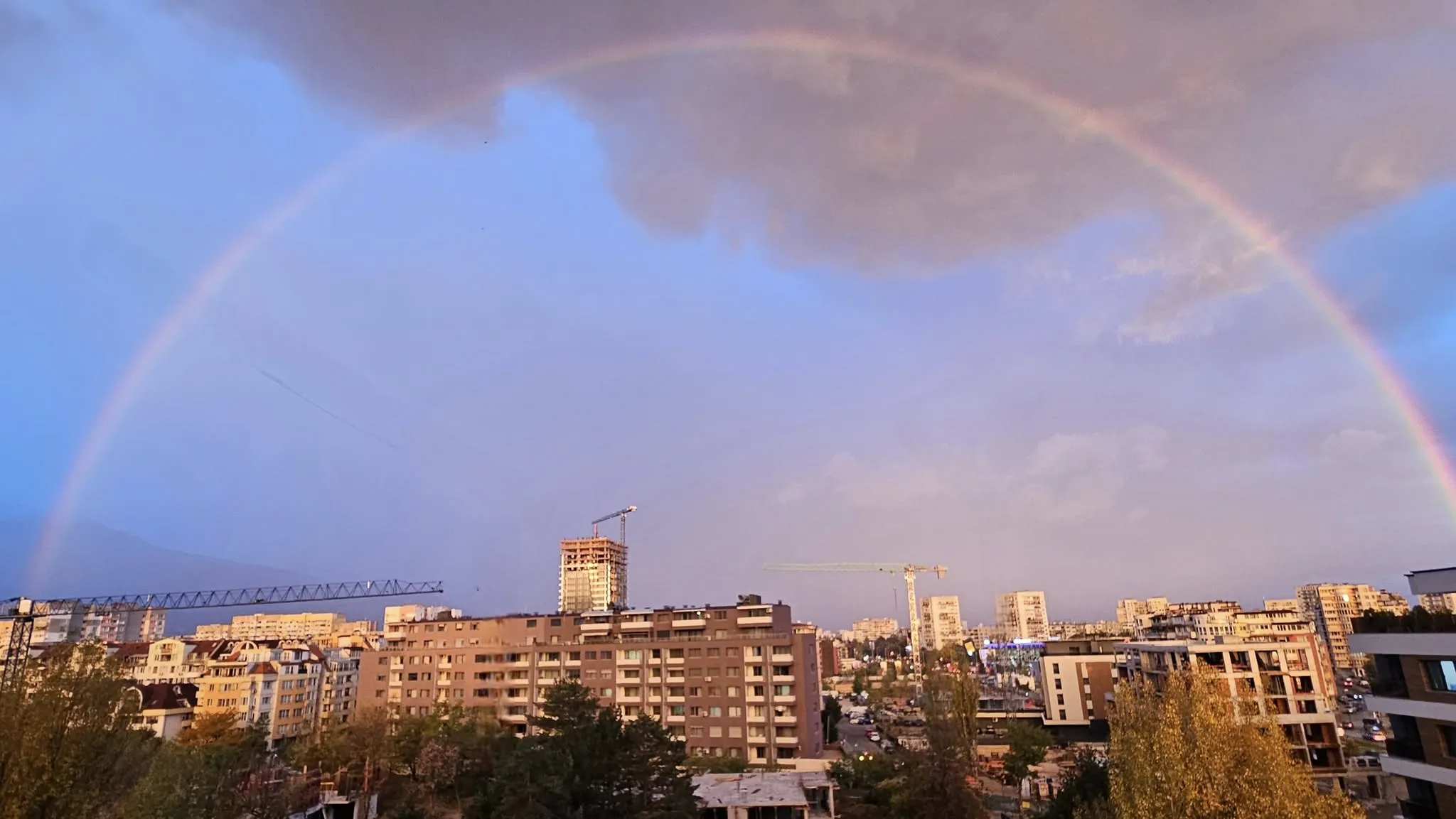 Ярка двойна дъга се появи над София малко след 8 часа сутринта.