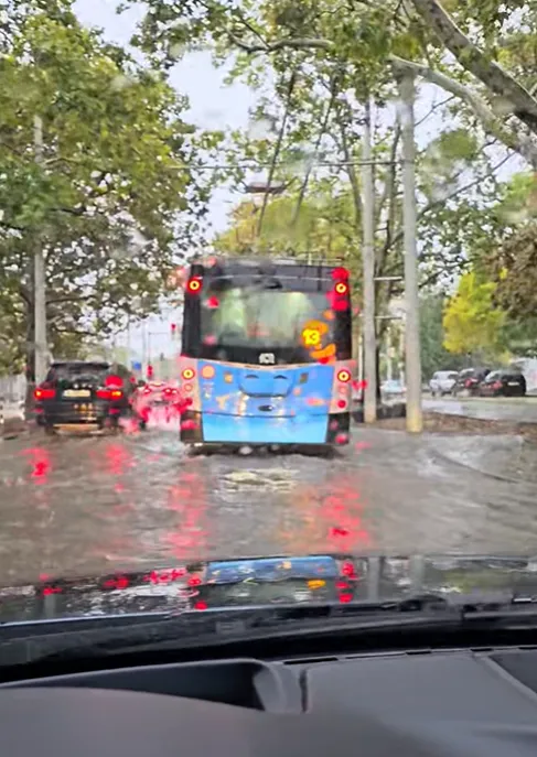 След поройните дъждове в Русе тази сутрин много улици в града се оказаха под вода, а придвижването както за автомобили, така и за пешеходци се превърна в сериозно предизвикателство. Жители на града споделиха снимки и видеа в социалните мрежи, придружени с възмущение и сарказъм.