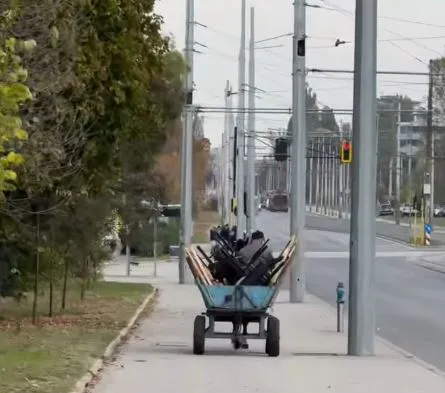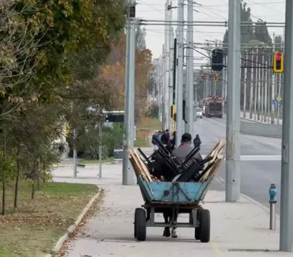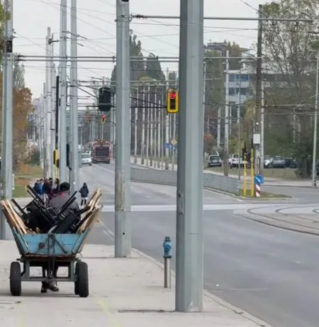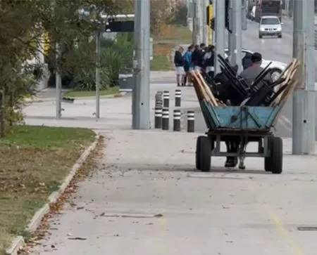 На любопитна гледка се натъкна столичанин посред бял ден. Наред с трамваите, колите и хората – каручка шпорила по тротоара край булевард в града. Натоварена до краен предел, но с бърза скорост, талигата бърза по пътя си, използвайки разчертаната на пешеходното пространство велоалея.