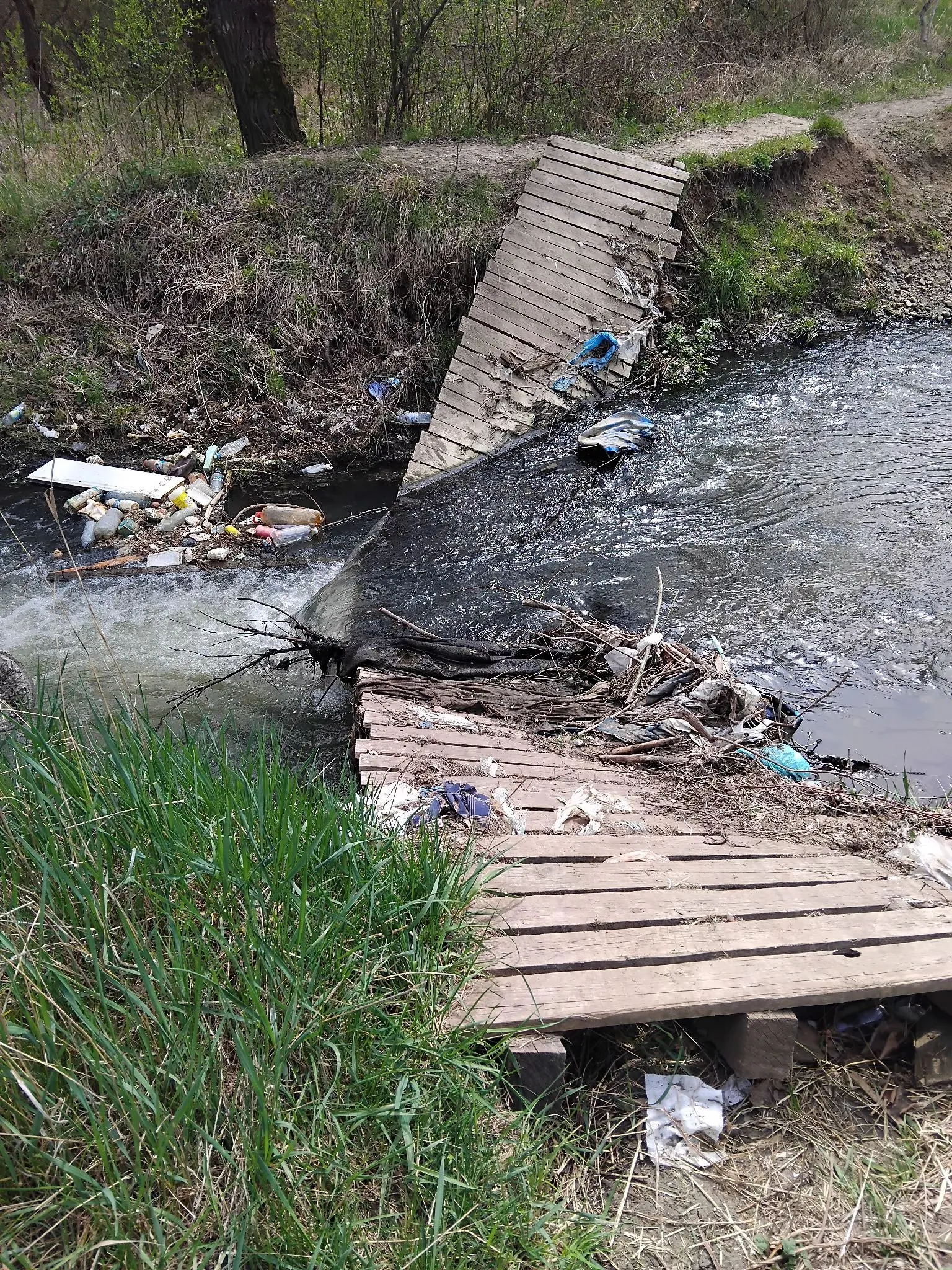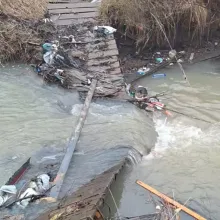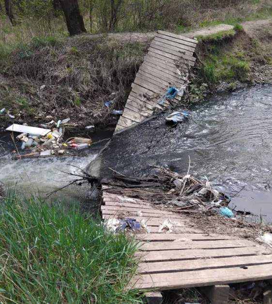 Два месеца по-късно обаче ситуацията остава непроменена. На място се вижда, че дървената конструкция е напълно компрометирана – части от нея са пропаднали в реката, а преминаването е практически невъзможно. Освен това районът около съоръжението е затрупан с отпадъци, което допълнително влошава обстановката и създава усещане за изоставеност.