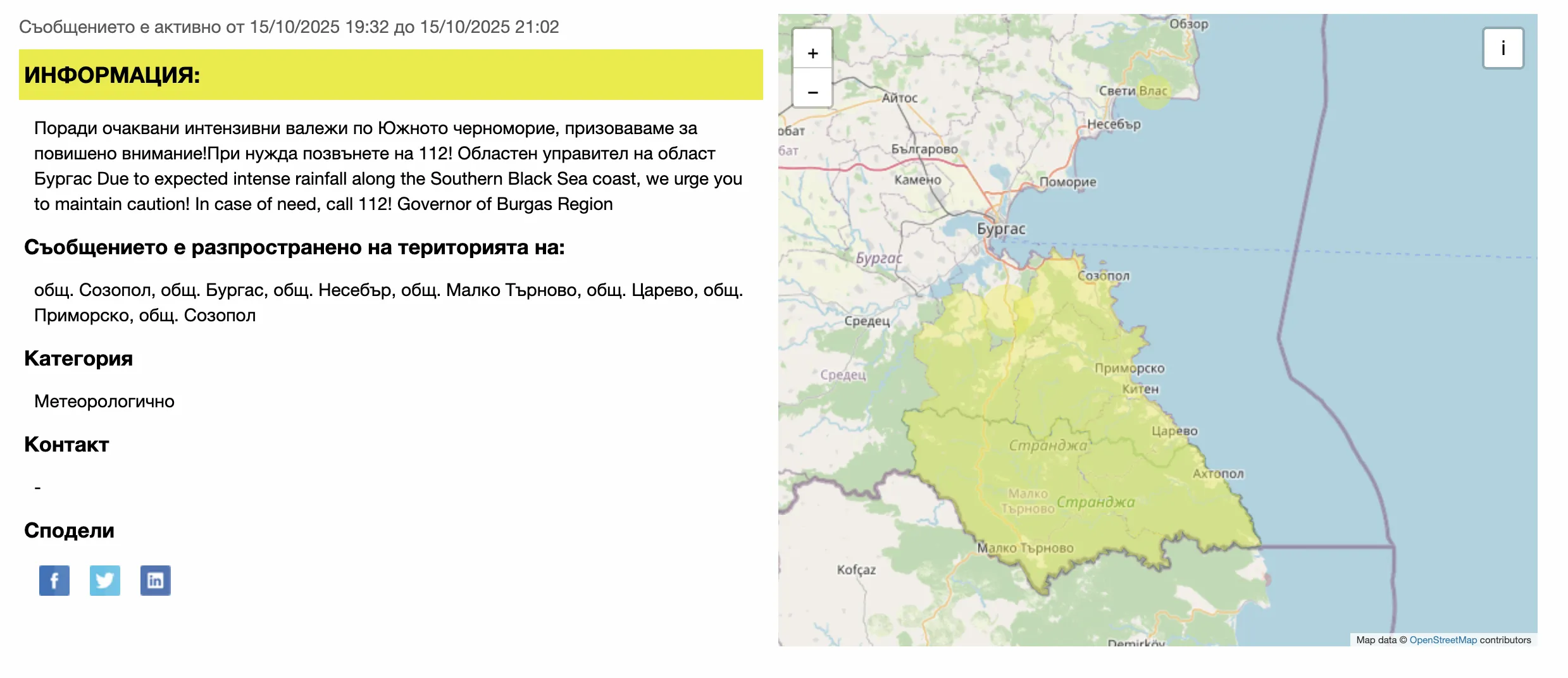 Вижте картата, която показва къде е активирана системата Bg-Alert: