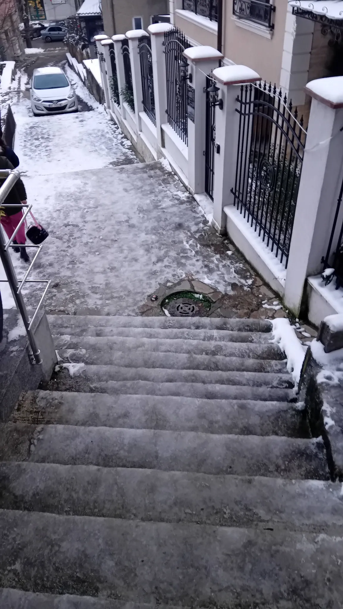 По думите на жителка на Търново, преките стъпала от ул. „Цар Самуил“ и други подходи към ул. „Васил Левски“ са напълно заледени и създават сериозен риск от подхлъзване и инциденти. Жената призовава за спешни мерки от страна на отговорните за снегопочистването и поддържането на пешеходната инфраструктура.