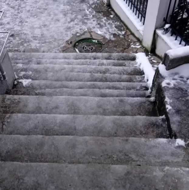 Заледени стълби и тротоари в централна част на Велико Търново предизвикаха тревога сред жители на града, след като в социалните мрежи се появи сигнал за опасни участъци, по които преминават ежедневно десетки хора.