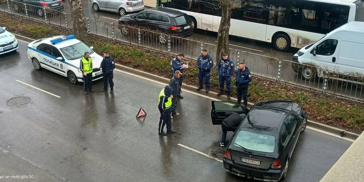 Лек автомобил "БМВ" се е завъртял на улица "Царевец" в квартал "Христо Смирненски". На място са пристигнали служители на реда.