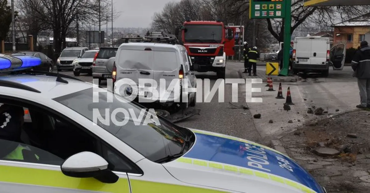По първоначална информация на водача на микробус му е прилошало зад волана. Превозното средство е ударило отзад фирмен автомобил, след което е помело пътни знаци и се е врязало в района на близката бензиностанция на метри от колонките, пише Нова.