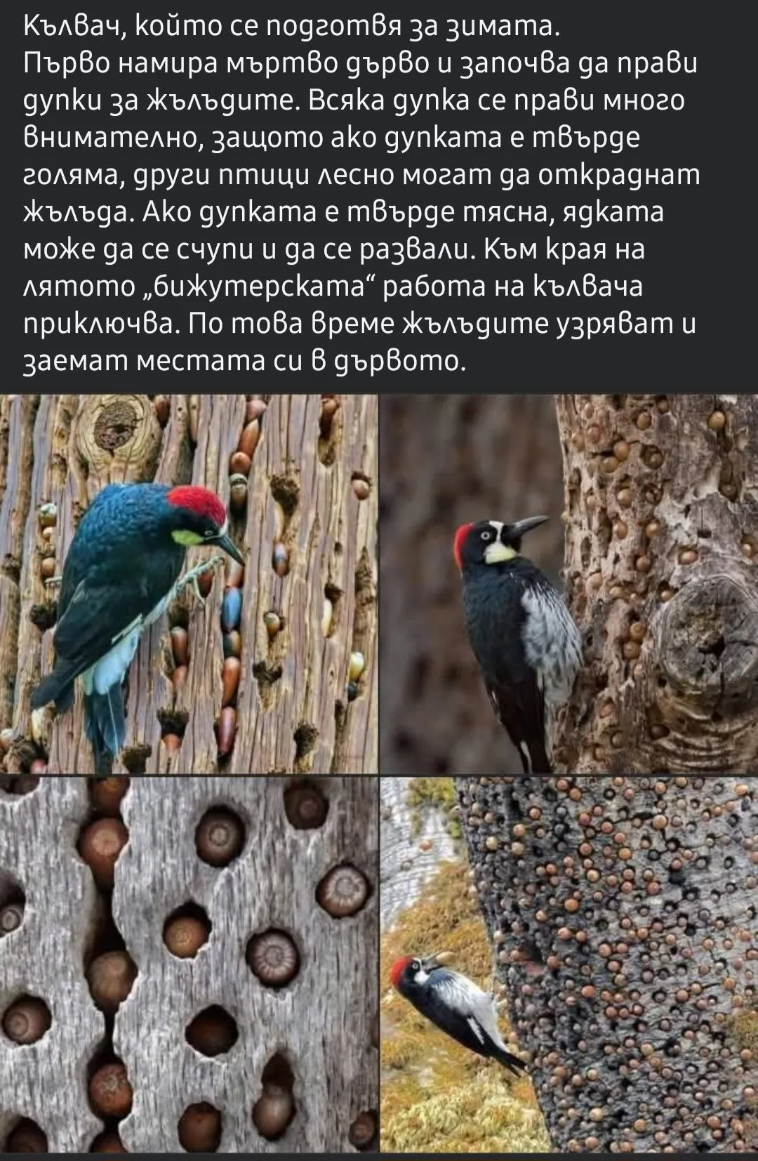 „Кълвач си е направил дупки за жълъди.Нагласил си е килер за зимнина.“