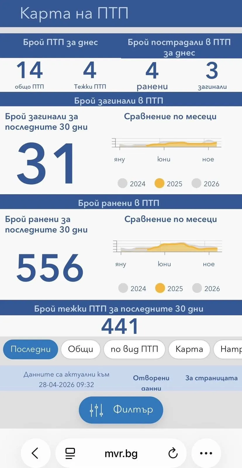 За последните 30 дни има 31 загинали. 556 са били ранени. Иначе всички институции отчитат „успех“ при овладяването на проблема с пътнотранспортния травматизъм.