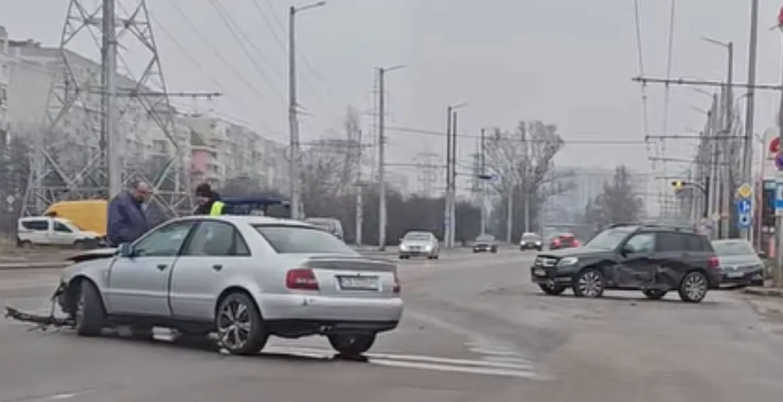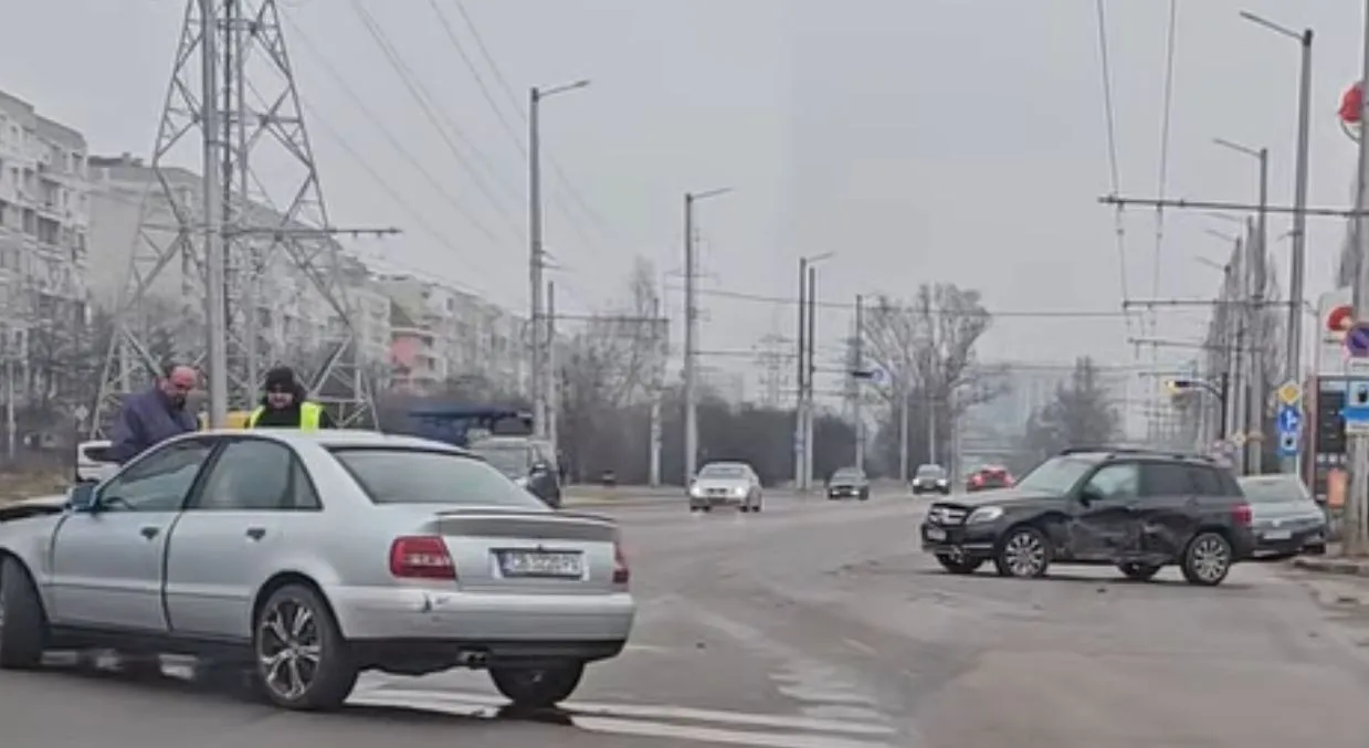 Сив седан и джип са се ударили на бул. "Проф. Цветан Лазаров", в района при пресечката за ул. "Капитан Димитър Списаревски".