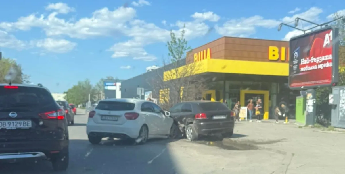 "Мерцедес" и "Ауди" са се ударили пред голям супермаркет, намиращ се на ул. "Железопътна".