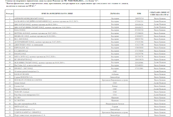 Разширеният списък включва юридически лица, попадащи в обхвата на т. 1, буква „а“ от РМС №441, а именно: „всички физически и юридически лица, притежавани, контролирани или управлявани през последните пет години от лицата, включени в списъка на OFAC“.