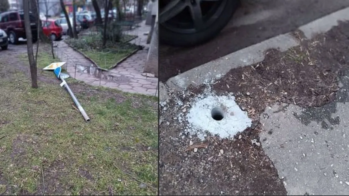 Жестока саморазправа с пътни знаци разтревожи жители на столичния квартал „Слатина“. За случая алармира гражданка, възмутена от случилото се в района на ул. „Слатинска“ и ул. „Камчия“, където няколко метални кола със знаци за предимство и забранено влизане са били умишлено срязани и захвърлени в калта.