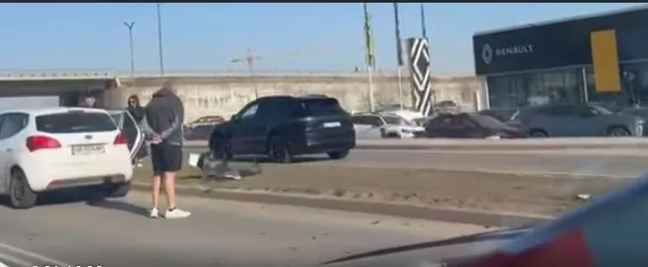 Произшествието е в района на "Ринг мол". Лек автомобил Киа е с потрошена предница, асфалта има разпилени счупени части. Зад машината е спрян бял хеджбек.