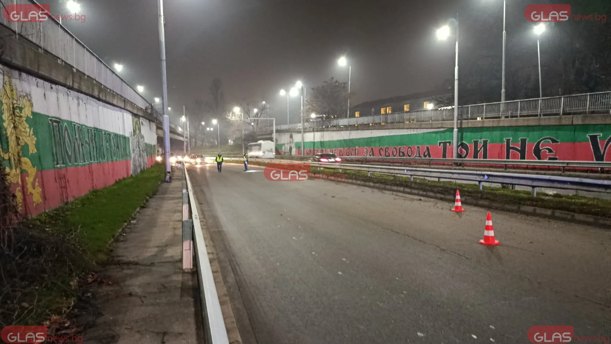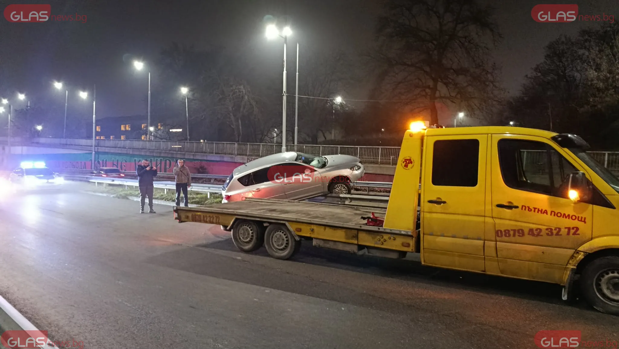 На място има полицейско присъствие, както и пътна помощ, която се включва в изтеглянето на автомобила. Районът е обезопасен с конуси, а движението временно е затруднено.